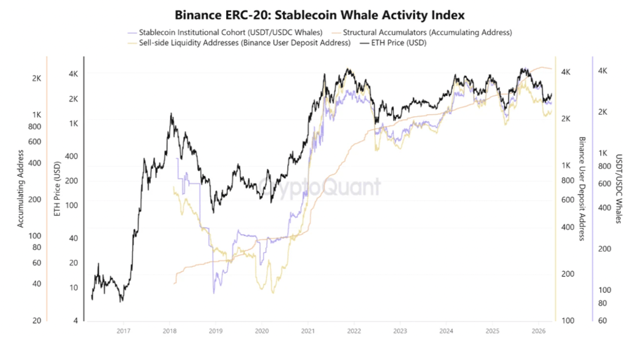 Binance ERC-20 stablecoin whale activity index. Source: CryptoQuant