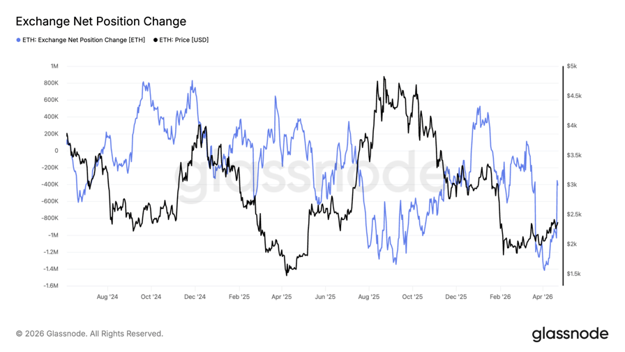 ETH: Exchange net position change. Source: Glassnode