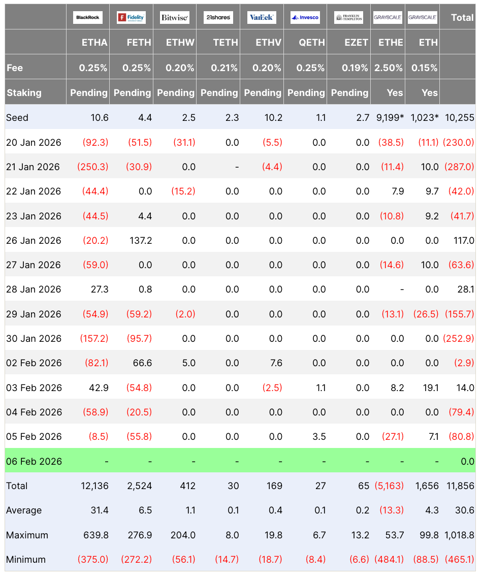 Spot Ether ETFs flows table. Source: Farside Investors
