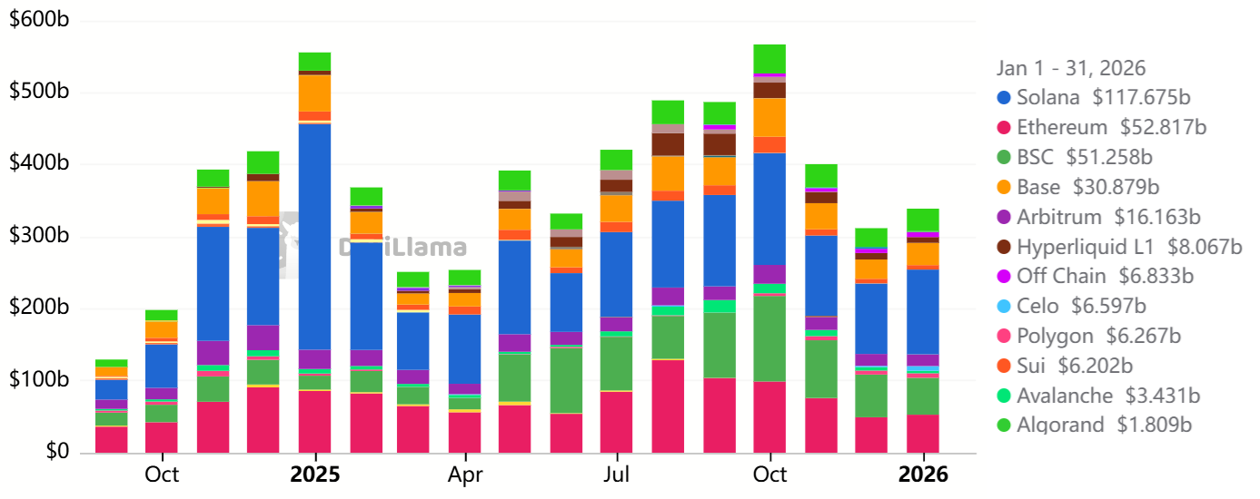 Trading volumes on Ethereum decentralized exchanges (DEX) reached $52.8 billion in January, a sharp drop from $98.9 billion in October 2025. This 47% decline in activity reduces incentives for holders; typically, high demand for blockchain processing triggers the network’s burn mechanism, which shrinks the total ETH supply.