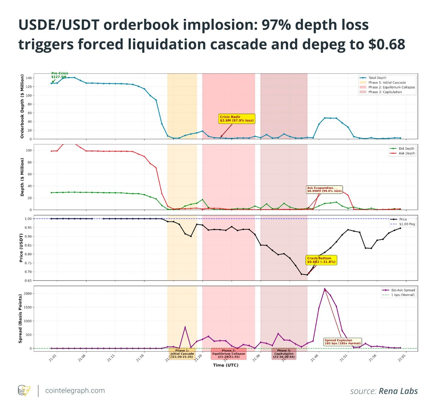 Using exclusively obtained, granular data from our partners at the AI-driven market analytics firm Rena Labs, Cointelegraph Research dissects the unusual activity on the USDE/USDT trading pair in this article.