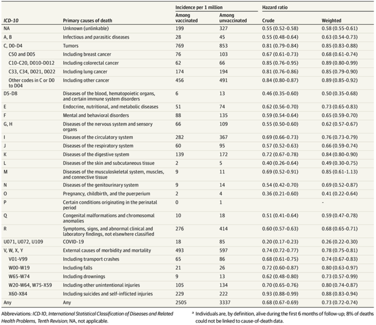 The researchers sought to control for various confounders, such as a healthy-vaccinee effect, where healthier individuals are more likely to opt for vaccination, or a frailty-related bias, where those in poorer health may avoid it. They also note that vaccinated individuals in their study were generally older and tended to have more co-morbidities, such as obesity and chronic illnesses, which would usually be associated with an increased risk of dying. (The different results, they note, might be partially explained by the fact that vaccinated individuals tend to be more socioeconomically advantaged.)