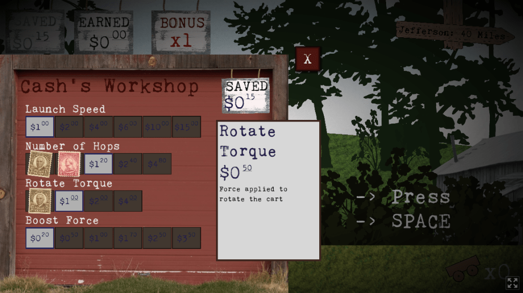 It’s a fun if slightly finnicky challenge that’s easy to understand but hard to master. There’s more than just the core physics gameplay too: progressing requires purchasing upgrades using the money you earn with each attempt, and the selection of these upgrades is crucial to finishing each stage.