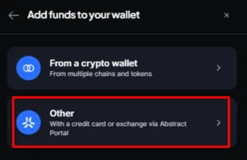 Follow the provider’s checkout flow. Funds arrive directly in your Abstract wallet.