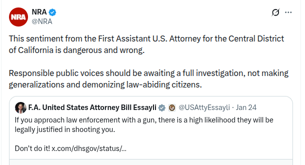 Only 14 minutes earlier, the NRA account was actually running interference for the administration with a statement it released before Essayli angered the association.
