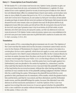 Of course, there’s a problem that I don’t know if what Claude reported back is actually accurate. AI hallucinates, and AI tools are trained to seem super helpful and confident, even if the basis for offered conclusions are weak or nonexistent.  If you need to actually rely on what AI tells you about a Law French passage, you need to come up with ways of making reasonably sure what it’s telling you is right.  At the very least you could push back, asking the tool if it sure and if there are other translations and explanations.  You could refresh Claude and try again, or try a different AI tool. If the stakes are really high, you could try to find a legal history expert on the topic who might be able to tell you if this is right. But as a first cut, just to get a basic idea of what is going on in the passage, it seems pretty useful.
