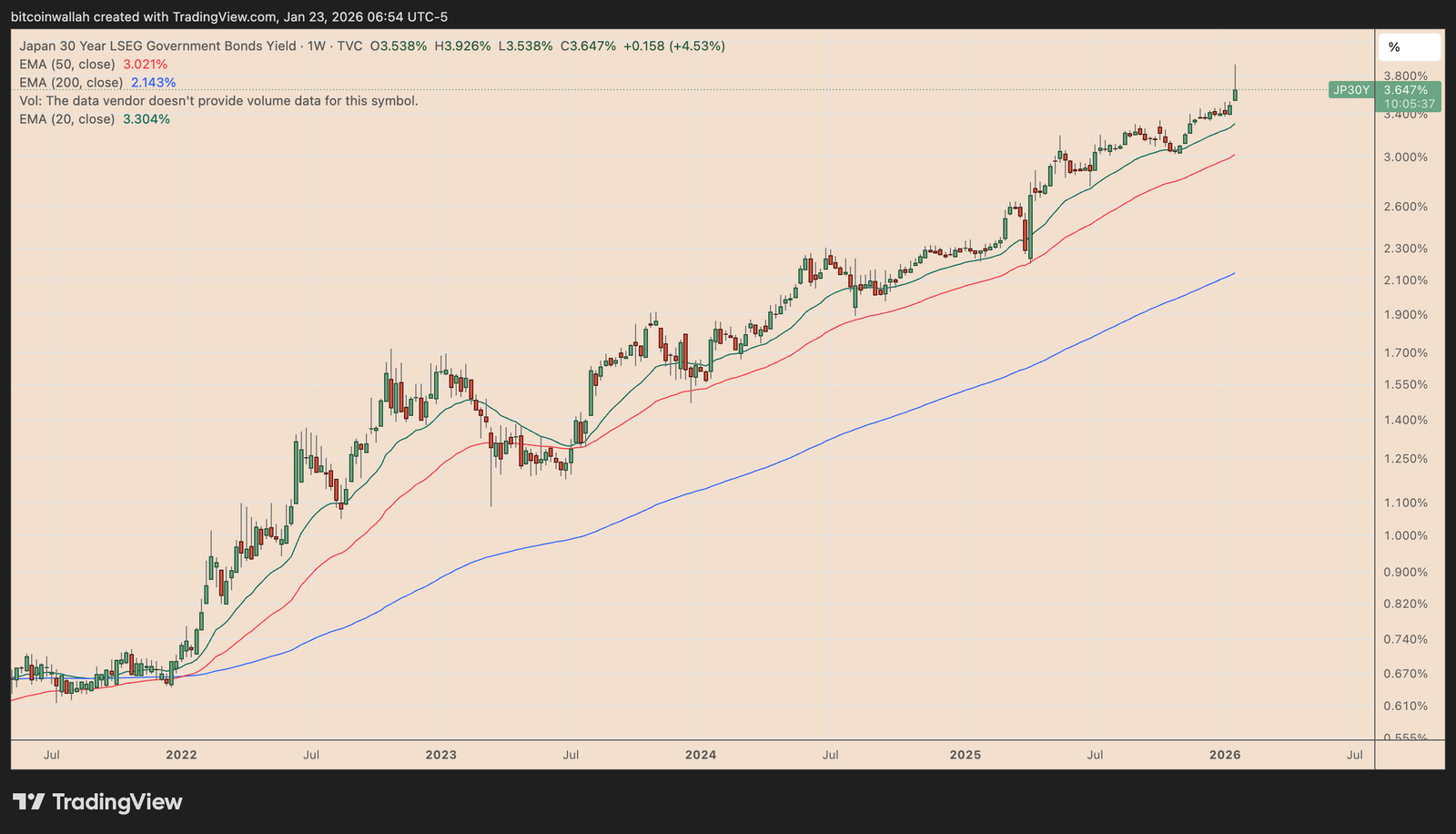 BTC price faces pressure as markets brace for a sustained rise in long-term yields driven by economic deficits, particularly in Japan.