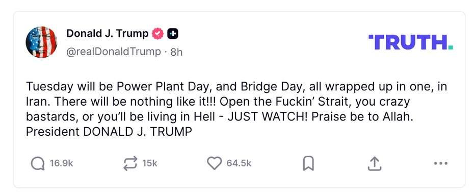 ‘Open the Fuckin’ Strait, you crazy bastards.’ President Donald Trump’s chaotic handling of the Iran War took a profane and bizarre turn on Sunday.