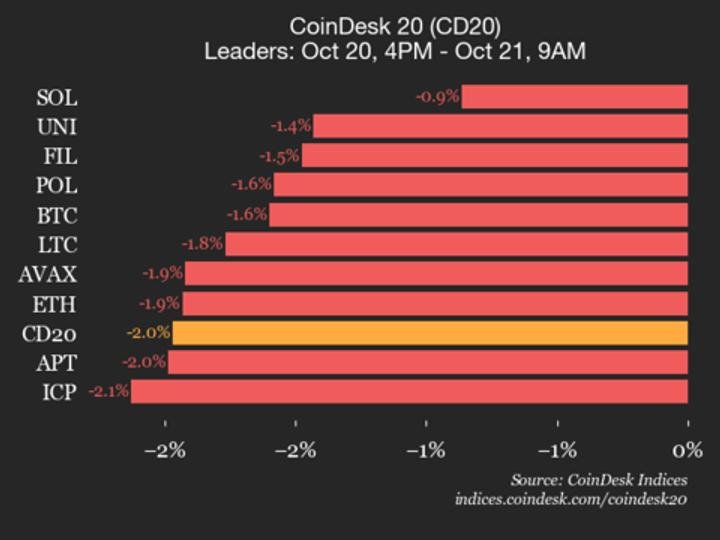 Leaders: SOL (-0.9%) and UNI (-1.4%).