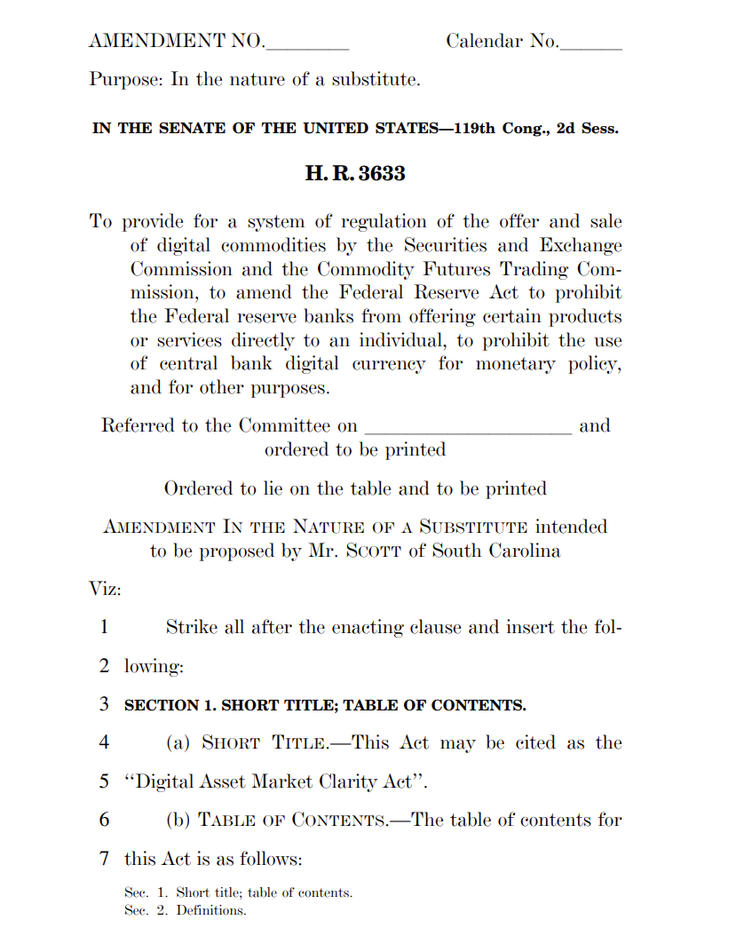 According to an amended draft of the legislation released this week, digital asset service providers would be prohibited from paying interest or yield “solely in connection with the holding of a stablecoin,” signaling lawmakers’ intent to prevent stablecoins from functioning like bank deposits.