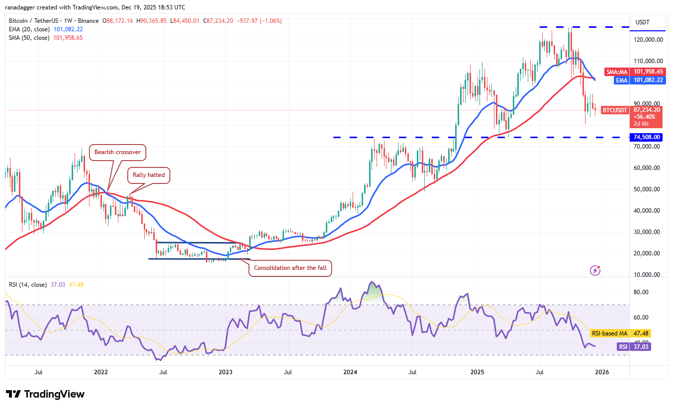 Instead, if the price turns up from the 20-week EMA and rises above the psychological $100,000 level, it suggests that the uptrend remains intact. The bulls will then attempt to drive the price to the all-time high of $126,199, where the bears are expected to mount a strong defense. If the buyers prevail, the BTC/USDT pair could start the next leg of the uptrend to $141,188 and then to $178,621.