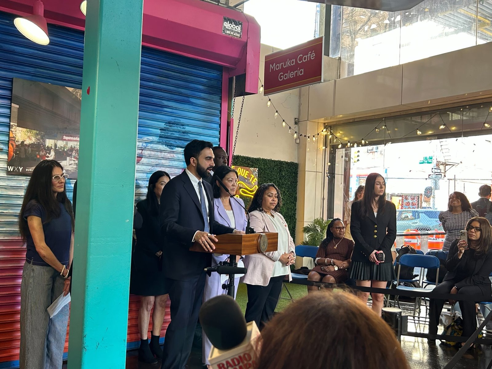 New York City Mayor Zohran Mamdani discusses plans for a city-owned grocery store in East Harlem. (Meagan O’Rourke)
