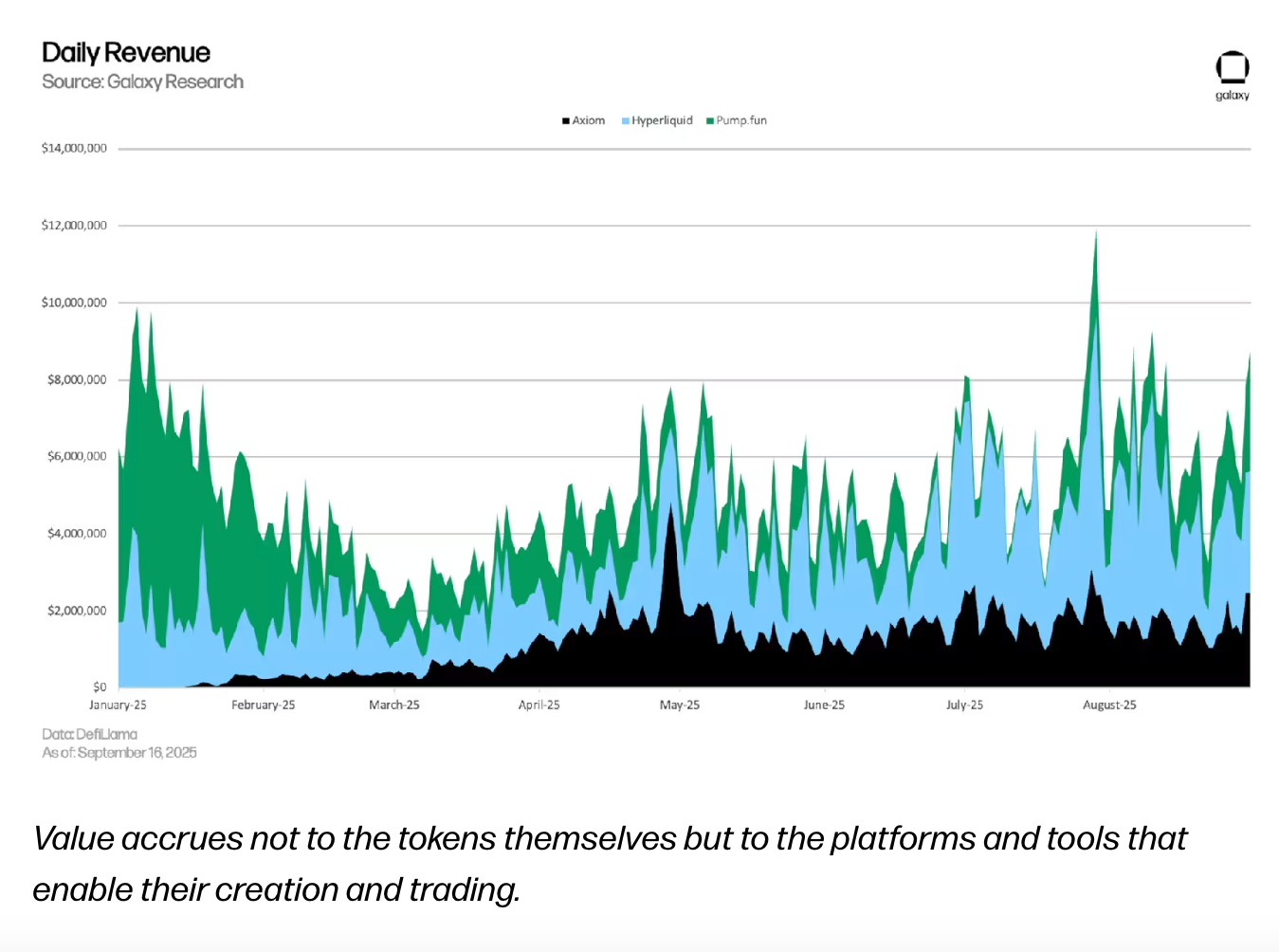 Daily revenue from memecoin infrastructure. Source: Galaxy Research