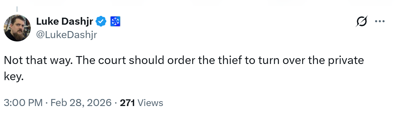 “The MtGox trustee has declined to pursue on-chain recovery, citing the uncertainty of whether such a consensus change would ever be adopted,” he said.