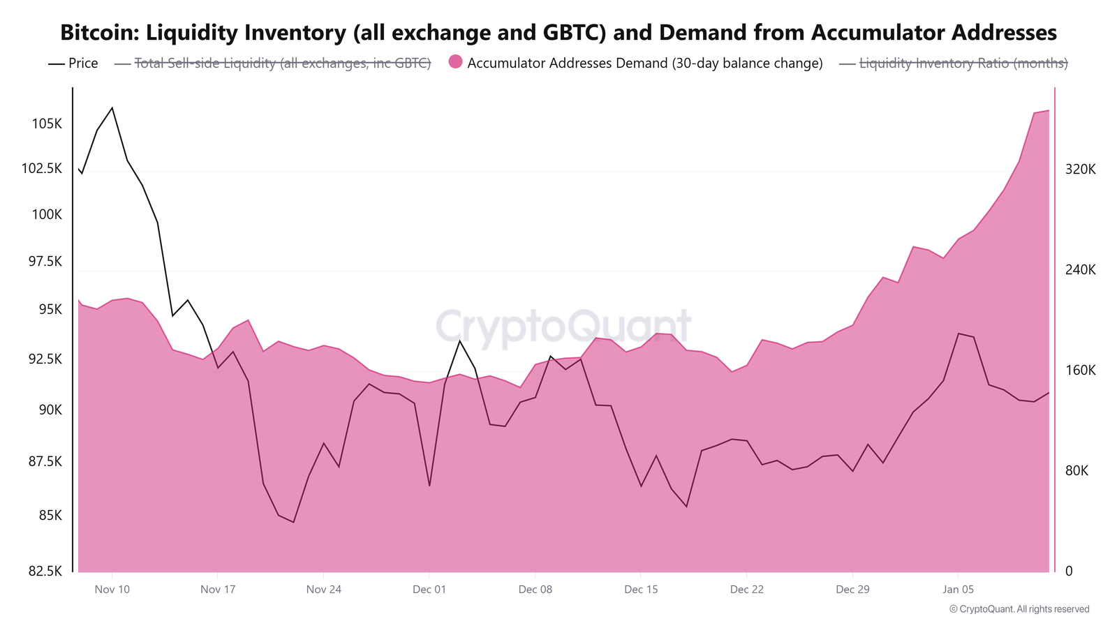 A recent report from Cointelegraph also highlighted multiple signals pointing to a slowdown in long-term selling pressure, which could lead to price expansion. Likewise, accumulator addresses, wallets that consistently buy without distributing, have continued to add BTC in 2026, amassing nearly 136,000 BTC in just 11 days this month.