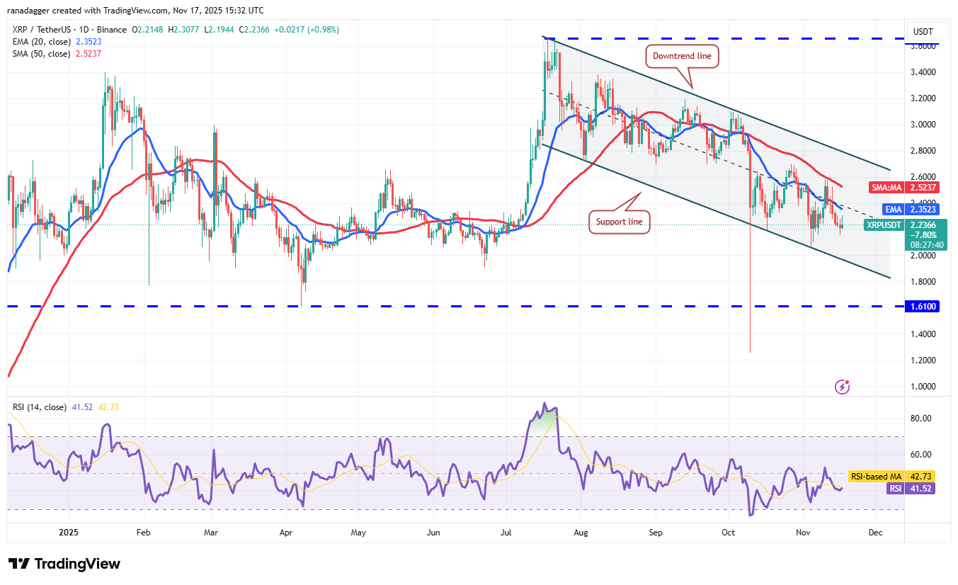 There is minor support at $2.15, but if the level cracks, the XRP/USDT pair could plummet to the support line of the channel. Buyers are expected to aggressively defend the support line, as a break below it may sink the pair to $1.61.