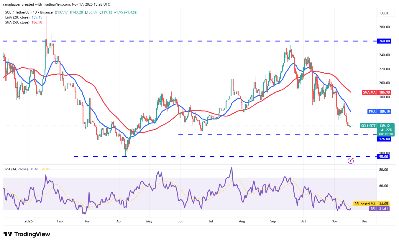Solana (SOL) has been gradually sliding toward the solid support at $126, indicating that the bears remain in control.