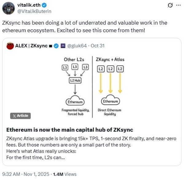 He claimed that the model now taking shape in the Ethereum ecosystem attempts to resolve that trade-off. It pairs locally operated private chains with ZK-proofs, allowing institutions to keep transaction data internal while still proving to the public network that the system is operating correctly. The public chain does not see the specifics of a transaction, but it can verify that no rules are being broken.