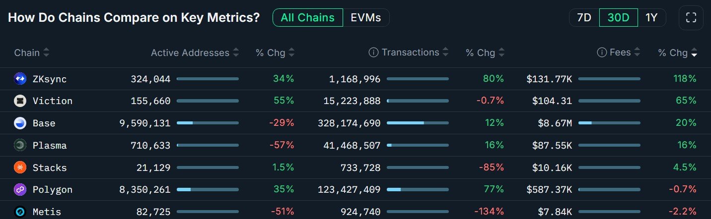 Data from Nansen in early November showed ZKsync leading the industry in fee growth over a seven-day period. Gluchowski attributed the increase not to retail speculation but to activity following the release of new tokenomics and staking proposals.