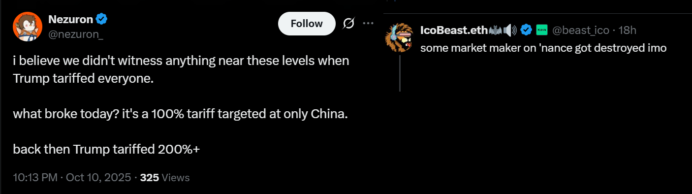 Hyperliquid, a perpetual decentralized exchange, reported that $2.6 billion in bullish positions were forcefully closed. Meanwhile, traders on several platforms, including Binance, reported issues with portfolio margin calculations. At the same time, DEX users complained about auto-deleveraging, which occurs when counterparties fail to meet margin requirements.