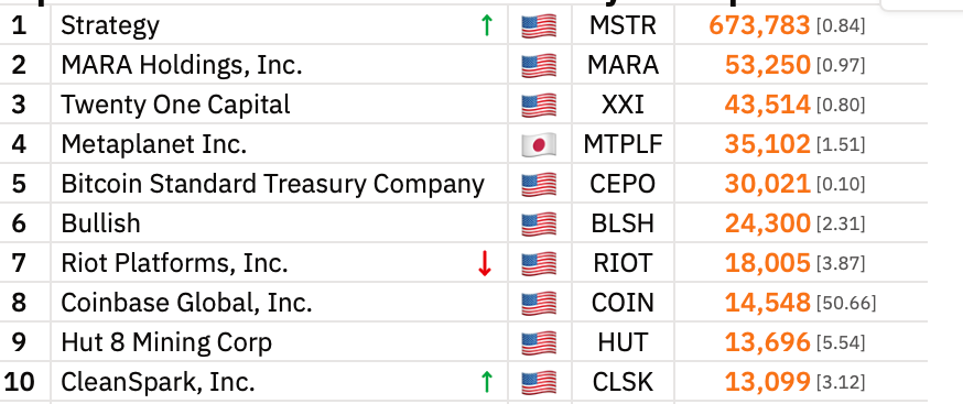 According to data from Bitcointreasuries.net, Riot ranks seventh among publicly listed companies by Bitcoin holdings.