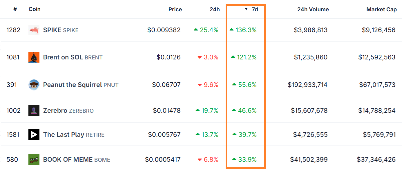 Multiple memecoins jumped 40% or higher between Wednesday and Friday, which likely contributed to the heightened demand for SOL futures.