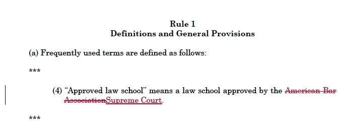 The Court how now proposed a single change to Rule 1 of the Rules Governing Admission to the Bar of Texas: the Supreme Court of Texas, and not the American Bar Association would accredit law schools.