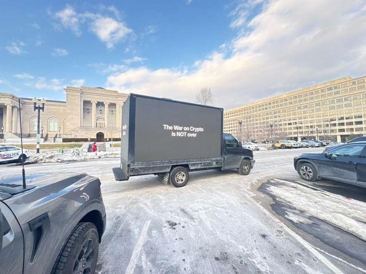 Konanykhin’s company has further sought to educate the SEC with a campaign involving trucks circulating around the center of Washington and past the agency, decorated with pointed messages that included the sentiment, “The War on Crypto is NOT over.”