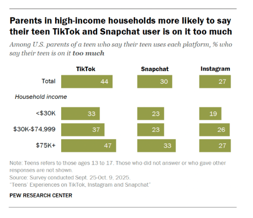 28% of teen TikTok users report spending too much time on the site, and that jumps to 44% when parents were asked about their teen’s use of the platform.
