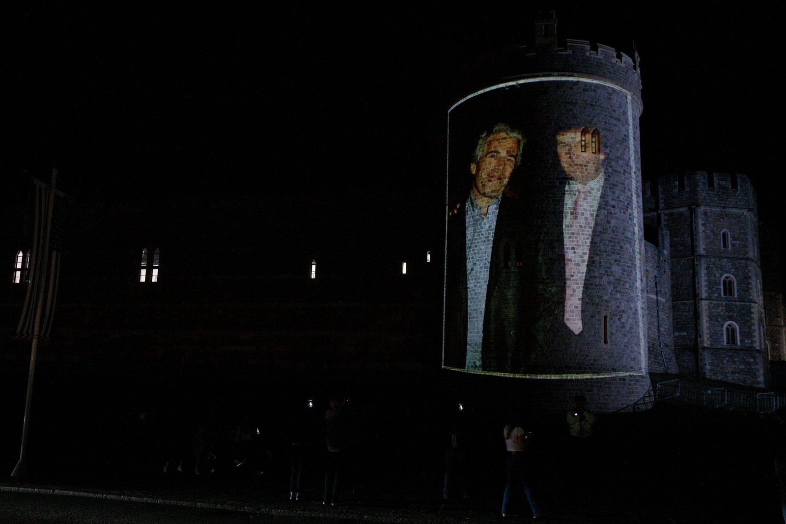 Four members of the group were arrested following the projection of images linking Trump to convicted sex offender Jeffery Epstein.