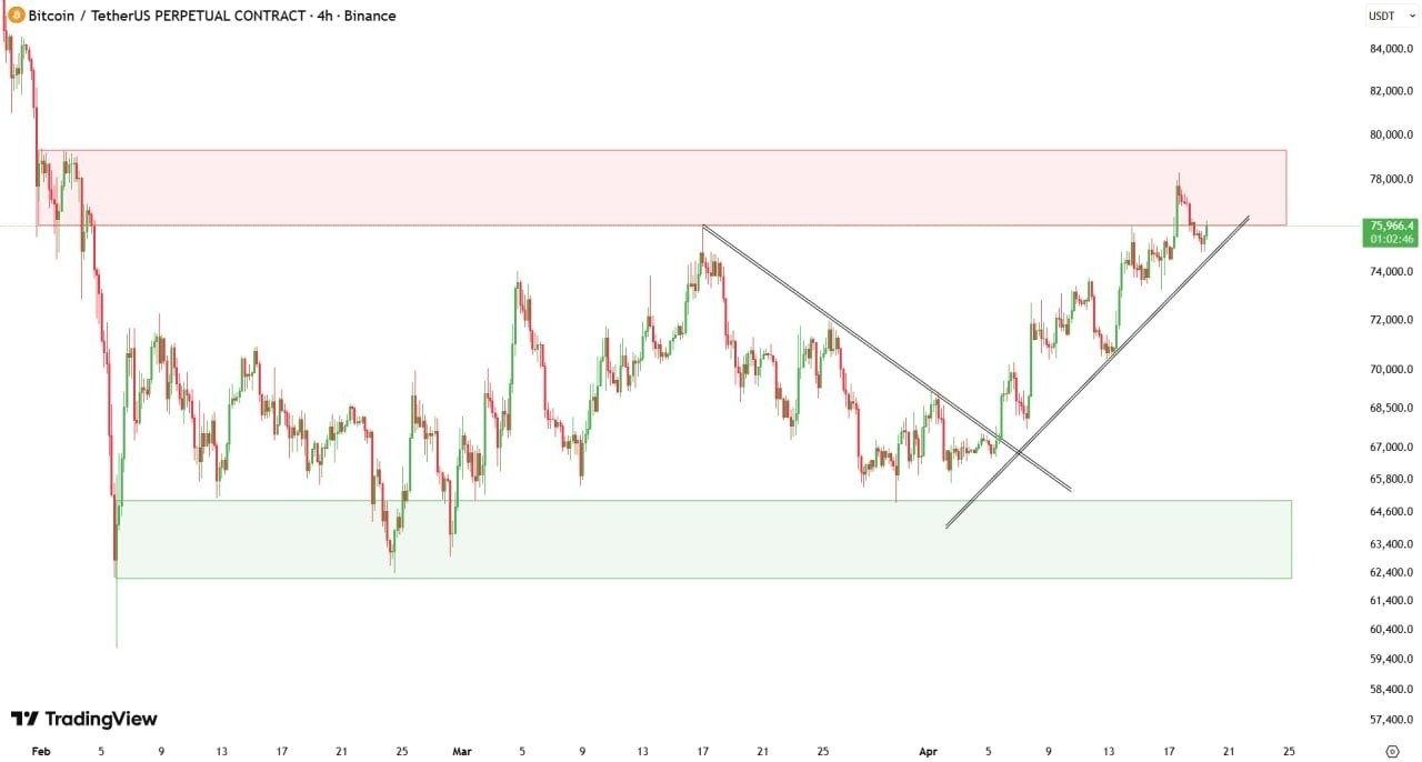 “A clean breakout above this zone could continue the move toward new highs, while rejection may lead to a pullback toward the 68K–70K support region.”