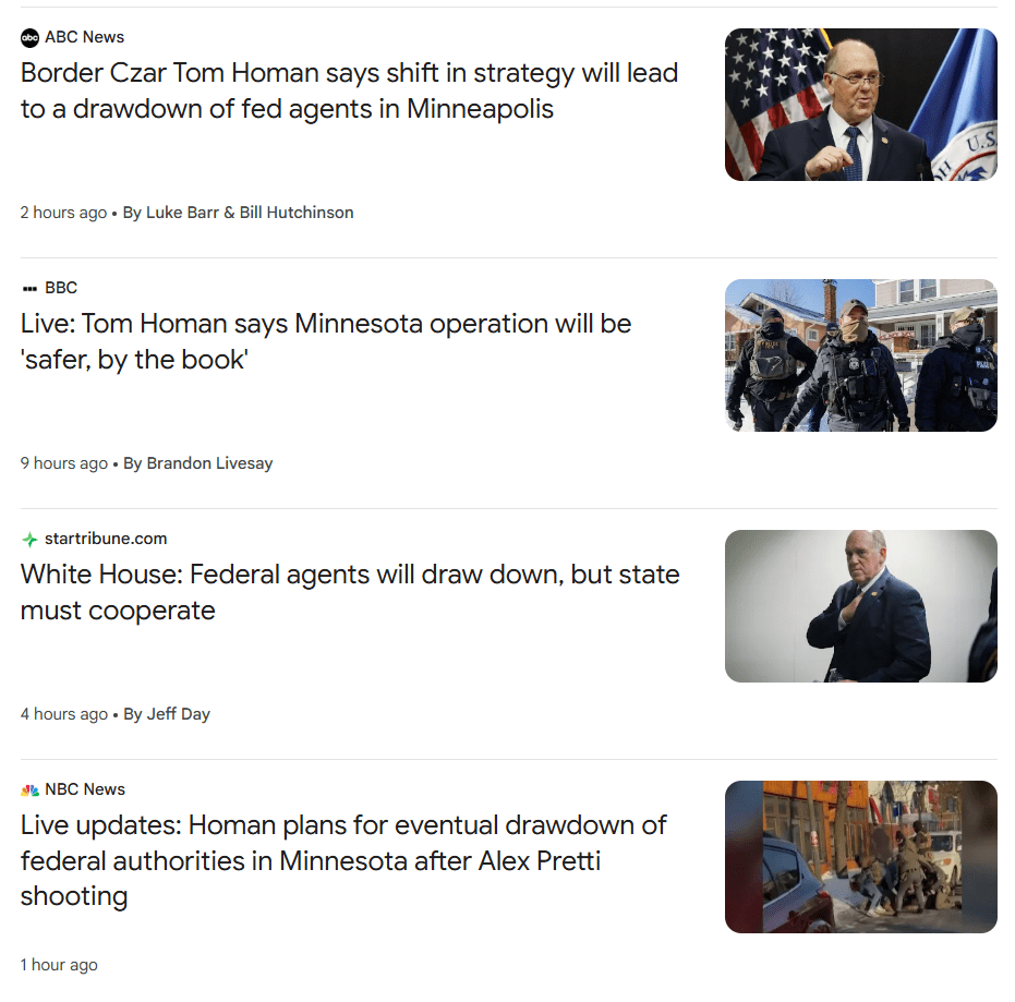 Tom Homan wasn’t sent to de-escalate anything other than all the negative press attention from federal thugs murdering people in the Twin Cities. And most of the media ate it right up.