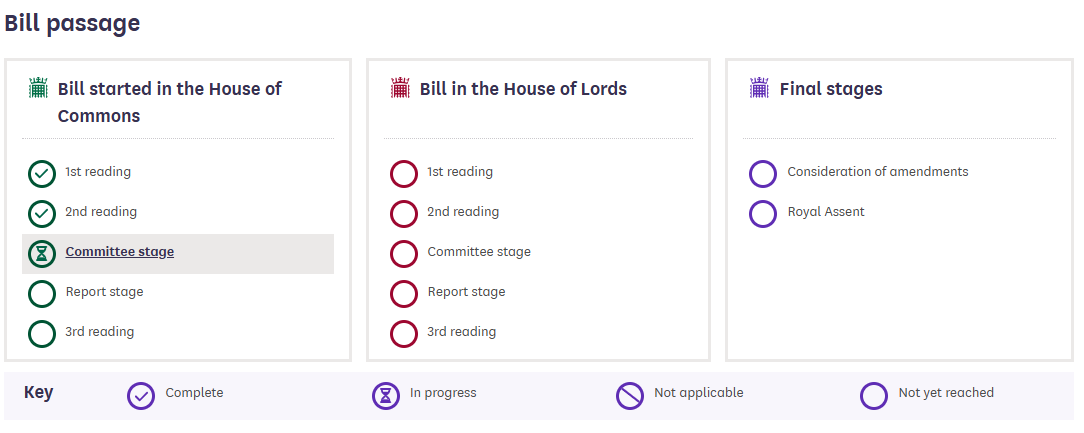 The legislation is still at the committee stage in the House of Commons. Source: UK Parliament
