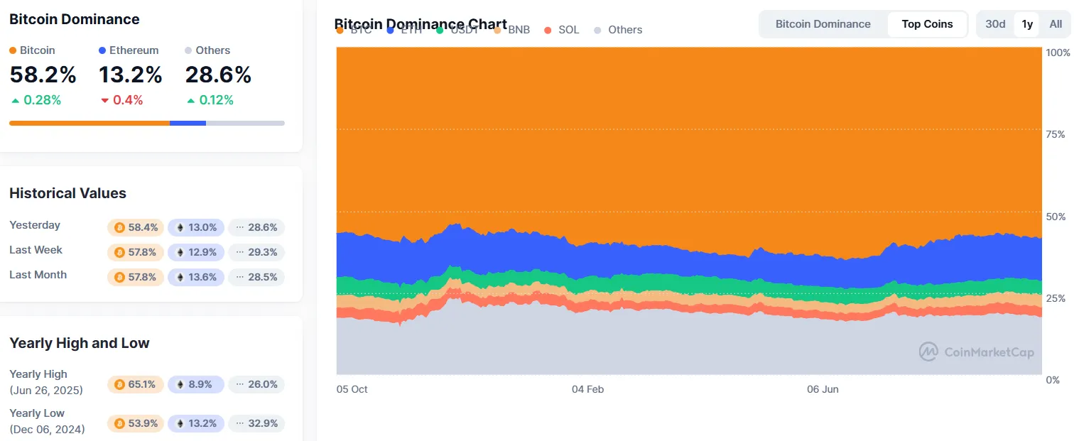 One revealing aspect of this rally is its distribution. Bitcoin dominance—its share of total crypto market cap—has been climbing, recently pushing above 58%. In other words, the rally is being led by Bitcoin rather than altcoins, which typically indicates institutional rather than retail participation. Institutions overwhelmingly prefer Bitcoin’s liquidity and regulatory clarity over smaller tokens—even if that is beginning to change.
