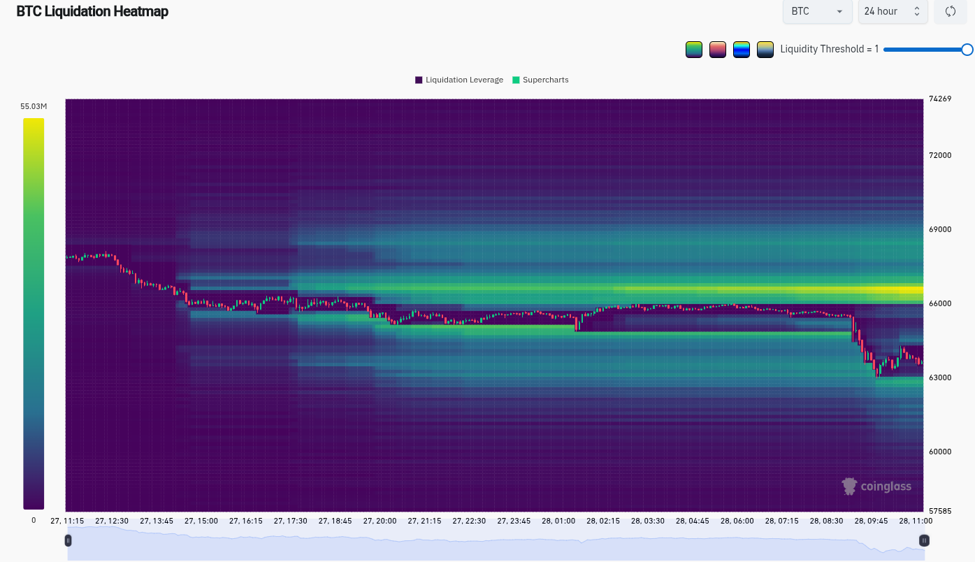 BTC liquidation heatmap (screenshot). Source: CoinGlass