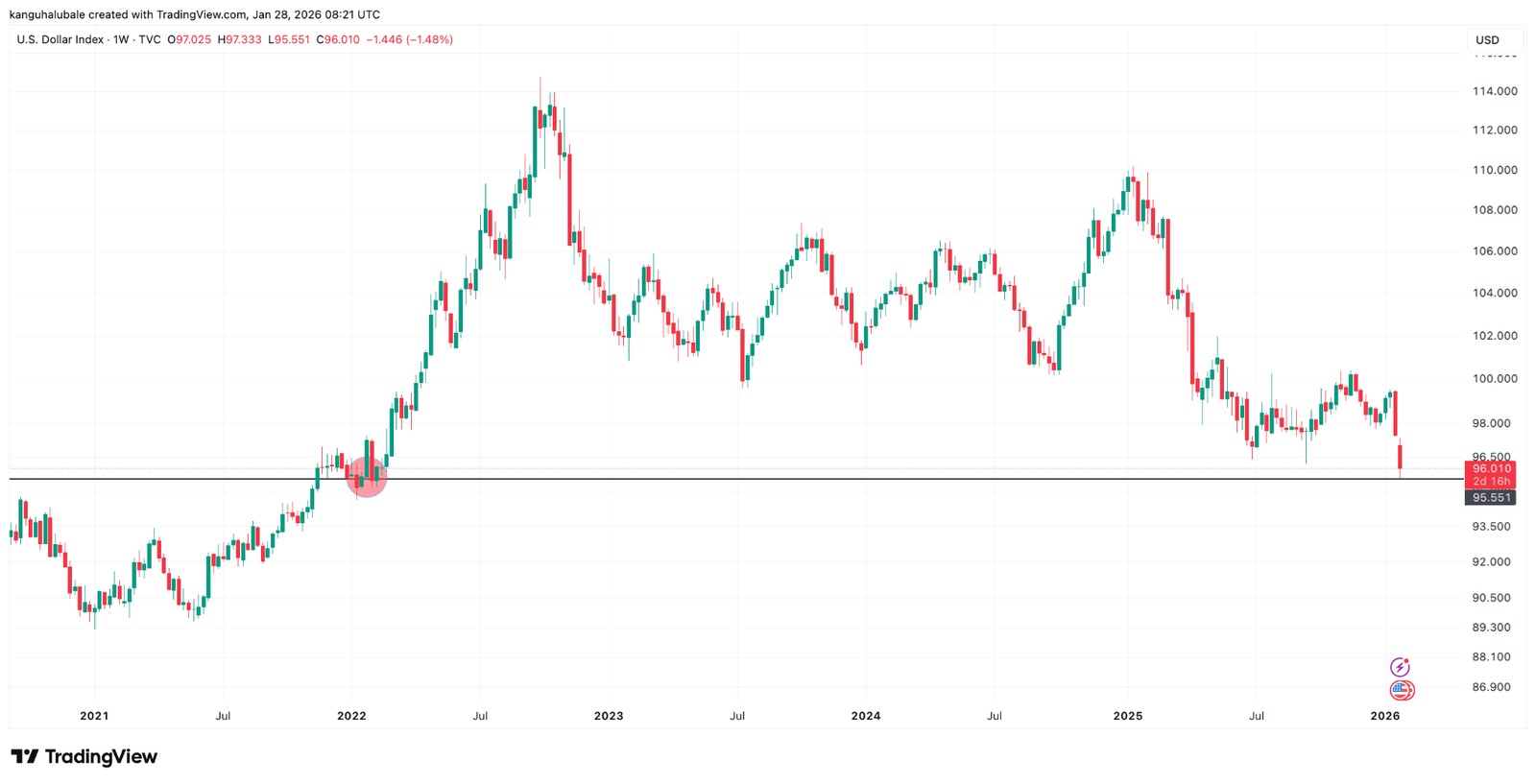 Historically, a weakening US dollar has tended to support risk assets such as Bitcoin by easing global financial conditions and improving liquidity.