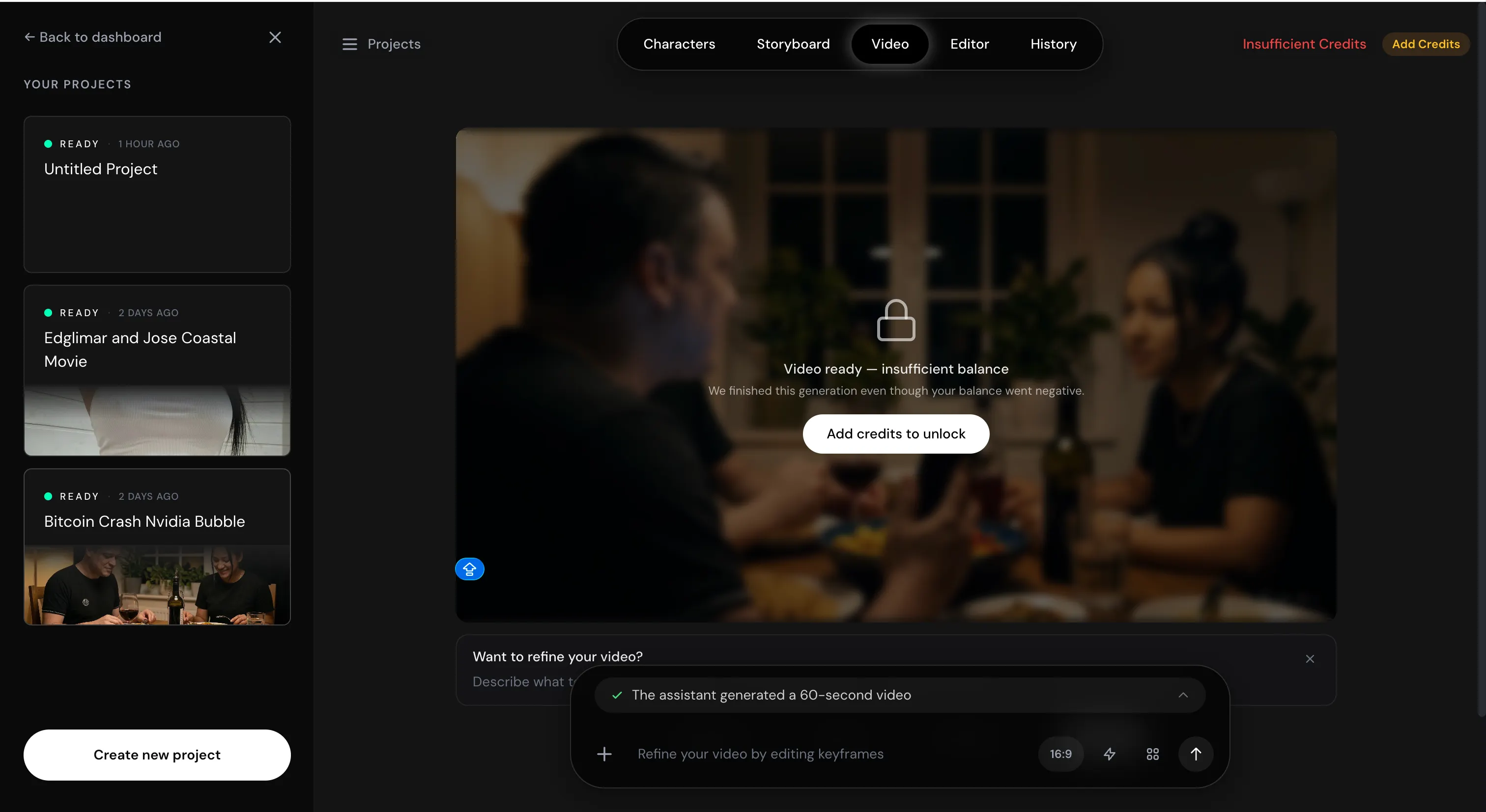 This is not a minor bug when you are paying real money and working within professional timelines. The interface acknowledges that errors happen. Experiencing it directly is a different thing, especially considering that you will need a positive balance to download a video if your credits were consumed during the generation process.