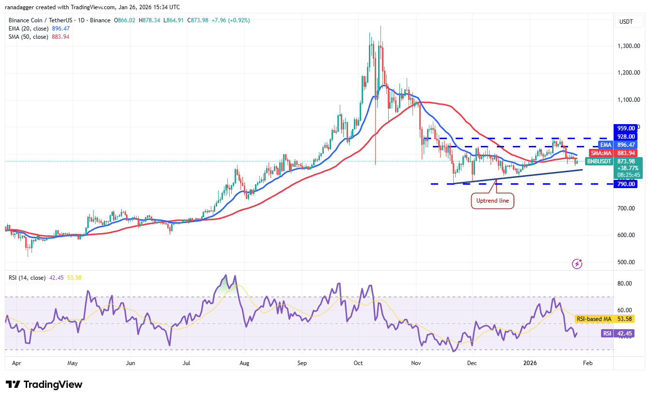BNB (BNB) closed below the 50-day SMA ($883) on Sunday, indicating that the bulls are losing their grip.