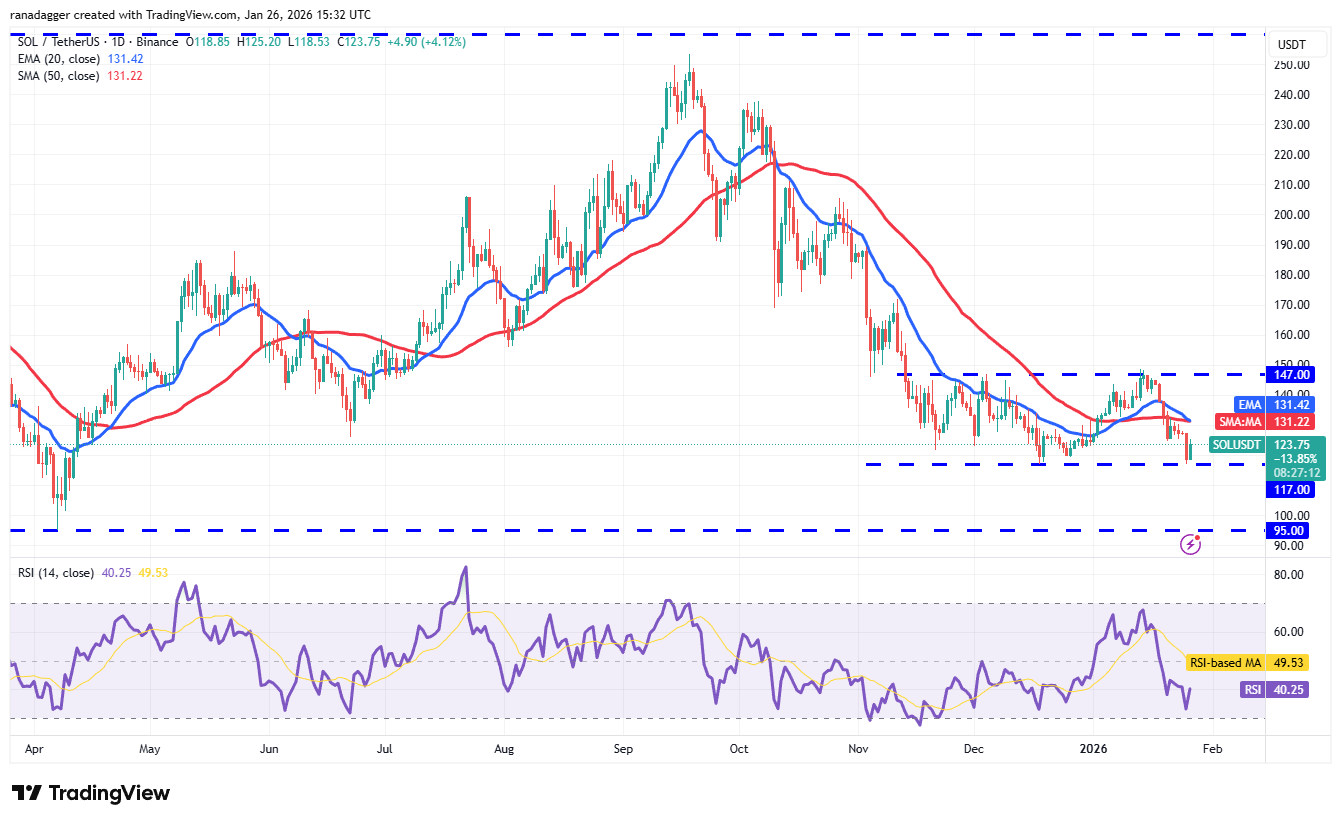 Solana (SOL) bounced off the $117 support on Monday, indicating that the bulls are defending the level.