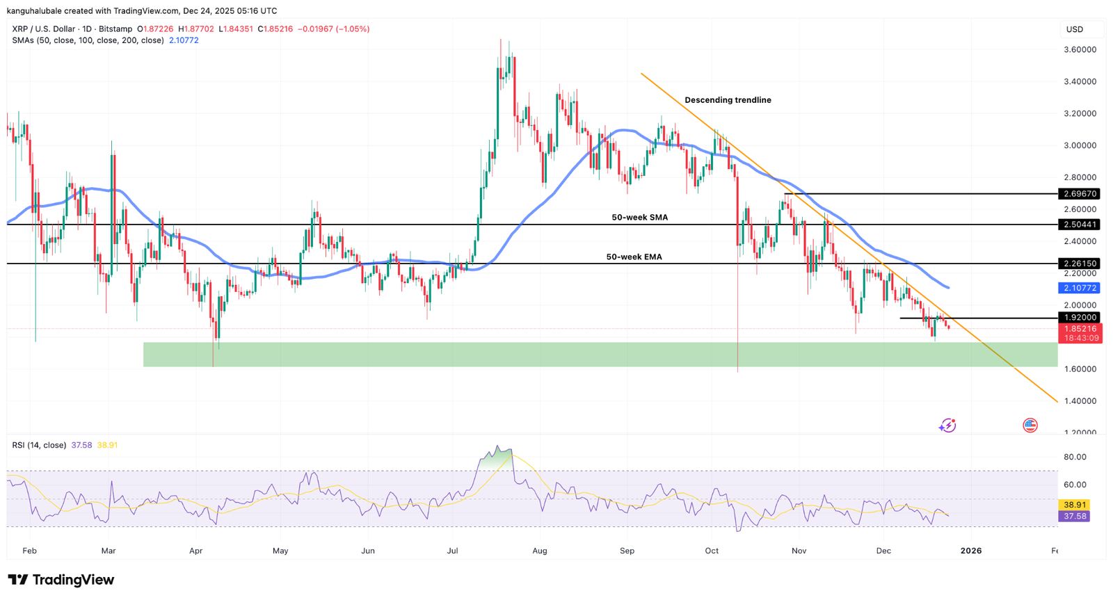 • XRP price must close above $2 on the daily chart to open the way toward $2.50.