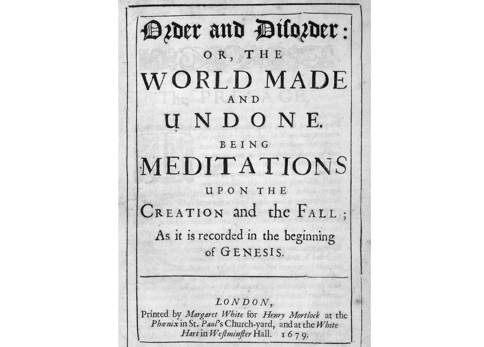 Hutchinson’s decision to translate Lucretius (b. 99 BC) was bold. While he was not an atheist strictly speaking, Lucretius believed that such deities that do exist are not remotely interested in human affairs. (He also theorised, correctly, that the world is made up of atoms.) This stood in pronounced contrast to Hutchinson’s own profoundly felt religious convictions, which she expressed in a long poem called Order and Disorder, the first five cantos of which were published in 1679. The work shows God very much engaged with the world, but frustrated by human sinfulness: