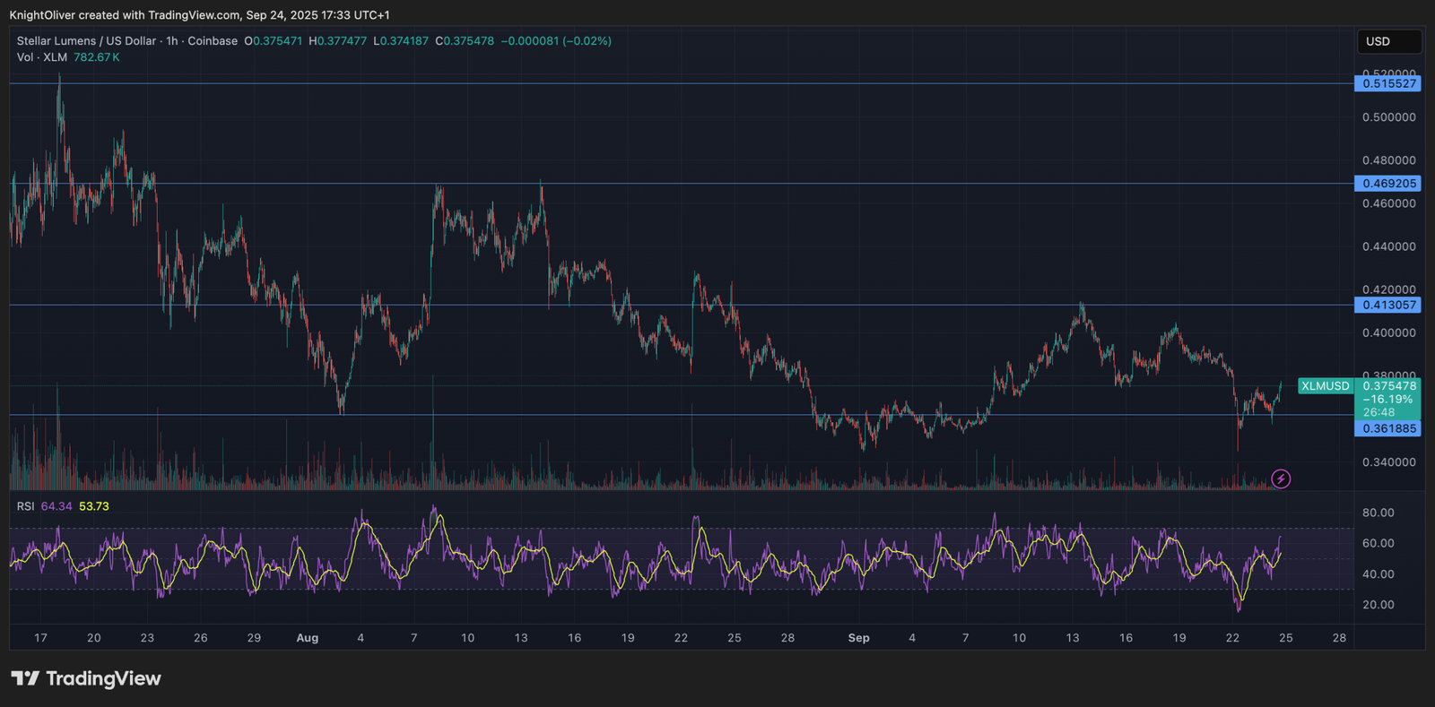 Stellar’s native token XLM weathered intense volatility over the past 24 hours, plunging to key support levels before staging a robust rebound. The moves, marked by unusually heavy institutional trading activity, underscored the market’s focus on the $0.36–$0.37 support zone as traders weigh the prospects of a breakout toward higher targets.