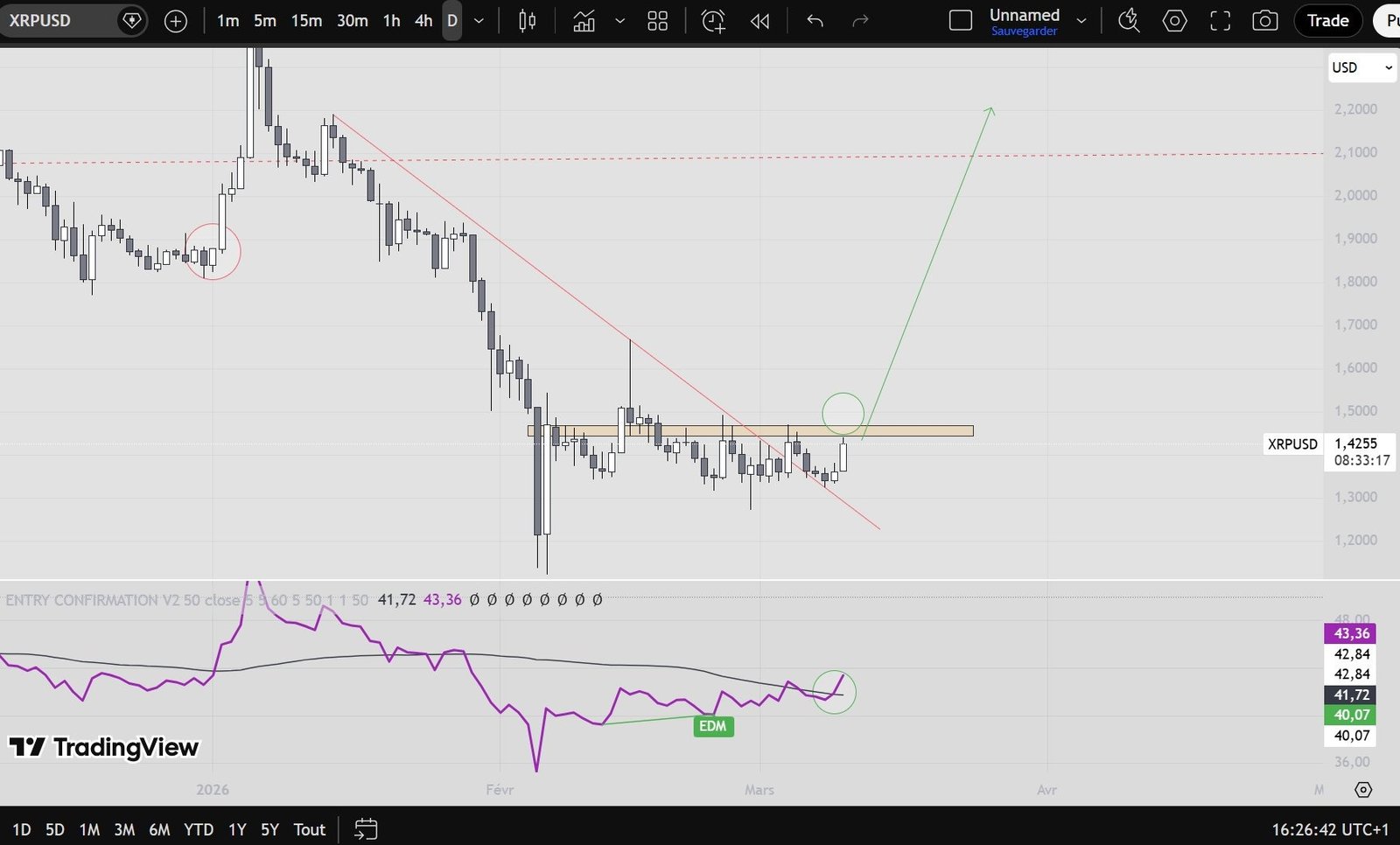 XRP analyst Arthur said, with the Bollinger Bands tightening, a daily candlestick close above $1.50 “would confirm momentum.”