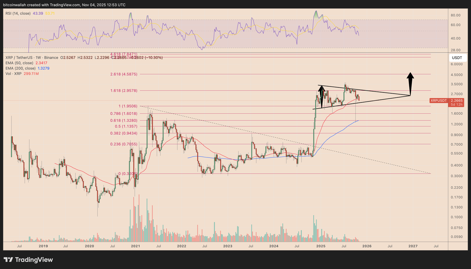 XRP/USDT weekly chart. Source: TradingView