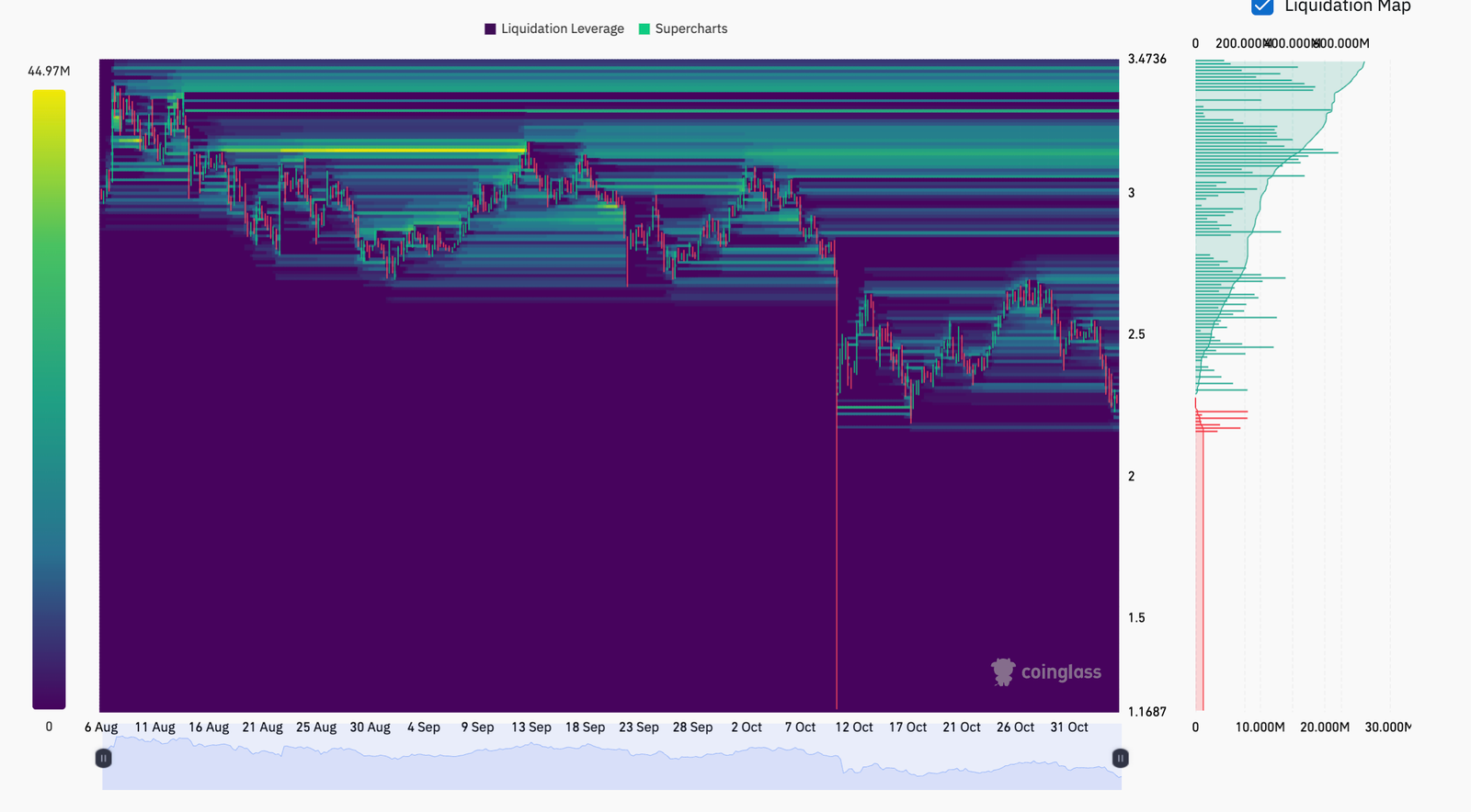 Meanwhile, there’s little to no long-side liquidity below $2.16, signaling that the long flush has already occurred during the October correction.